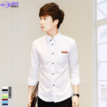 男士商务长袖白衬衫男青少年学生潮男韩版纯棉修身纯色方领衬衣男
