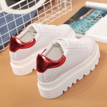内增高小白鞋夏季女2017新款百搭韩版真皮镂空透气系带休闲鞋子女