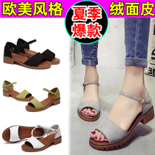 2017春夏季新款韩版凉鞋女鞋粗跟低跟鱼嘴一字扣带包跟学生时尚潮