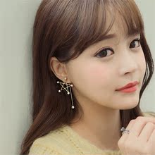 韩国简约不对称五角星珍珠装饰耳钉女长款百搭耳环耳坠配饰耳饰品
