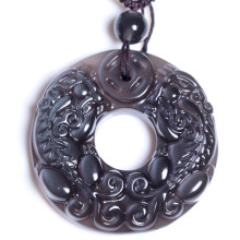 天然水晶冰种黑曜石彩虹眼平安扣貔貅吊坠 男士女款项坠