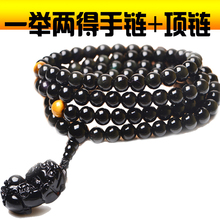 包邮天然水晶108颗佛珠黑曜石手链男士本命年生肖手链多层手链女