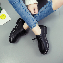 2017春季百搭韩版黑白色低帮女鞋系带小皮鞋学生休闲鞋平底女单鞋