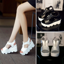 2017夏季新款韩版潮厚底鱼嘴防水台高跟女鞋坡跟松糕凉鞋女学生鞋