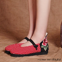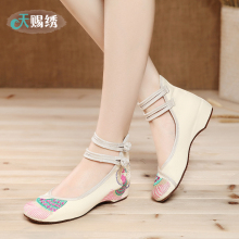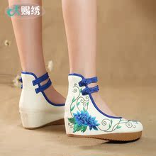 16春秋新款老北京布鞋复古民族风舞蹈鞋绣花鞋内增高坡跟女单鞋羽