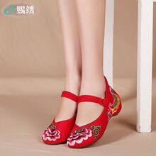老北京布鞋春秋夏内增高广场舞蹈鞋妈妈鞋民族风绣花鞋汉服单鞋女