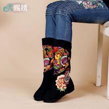2015新款春秋季老北京布鞋女鞋绣花鞋民族风中筒靴女靴布靴单靴子