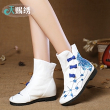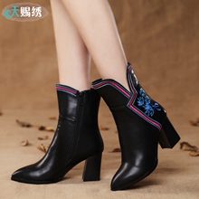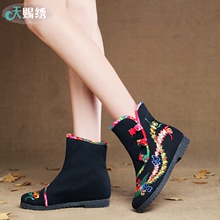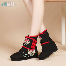 天赐绣 原创 老北京布鞋 绣花鞋女 短筒女靴子 短靴高跟粗跟防水