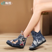 2017新款内增高布鞋女老北京民族风靴绣花鞋 春夏女靴 中国风短靴