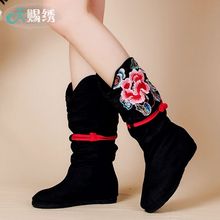 2016秋冬新款女鞋短靴 老北京布鞋女靴子内增高坡跟民族风绣花靴