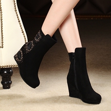 坡跟内增高老北京布鞋 女鞋 绣花布靴中筒靴冬季短靴做皱女靴子
