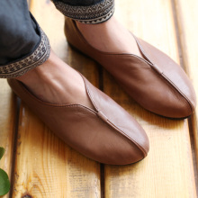 禅意民族风中国风复古女鞋手工牛皮平底浅口船鞋软底舒服真皮单鞋