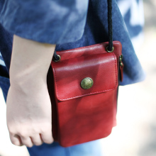 新款头层牛皮复古迷你饺子包小包包斜跨包真皮单肩女包手机零钱包