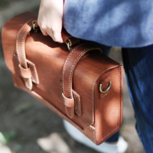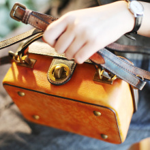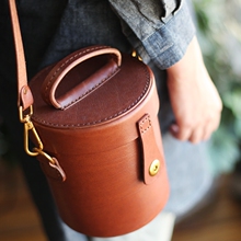 复古圆筒水桶包女包小挎包真皮斜跨包植鞣牛皮手工包学院风硬皮包