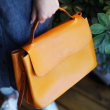 软牛皮姜黄色女包托特包手工真皮手提单肩大包原创文艺简约斜跨包