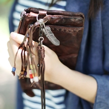 印第安流苏真皮复古植鞣牛皮手工财布粗犷钱包长款拉链大容量手包