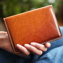 原创设计师款钱包男生女款潮牌手工植鞣牛皮个性短款横款两折钱夹
