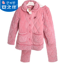 安之伴睡衣2016新款冬季中年女加厚珊瑚绒夹棉家居服套装64F5474