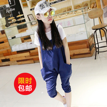 雨星雨嫣【16839K】女童背带裤夏装连体裤宽松韩版中大童七分裤潮