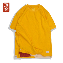 EAFIN′S 17SS 夏季休闲纯色印花圆领短袖t恤男 下摆拼接tee 黄色