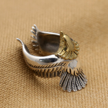 925纯银goros高桥复刻戒指镶铜大老鹰男士霸气开口指环复古泰银戒