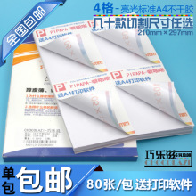 A421免邮4格光面喷墨A4不干胶切割打印纸 激光空白背胶自粘标签纸