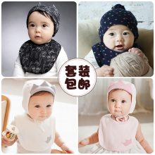 婴儿帽子三角巾二件套 春秋季新韩国宝宝帽子口水巾套装6-12个月