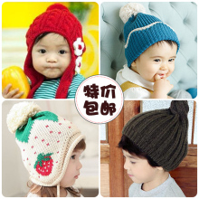 纯手工婴儿帽子韩国版宝宝毛线帽子秋冬季6-18个月男女儿童护耳帽