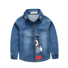 冰川熊薄款儿童牛仔衬衫男童春秋款长袖衬衣中小童卡通韩版上衣