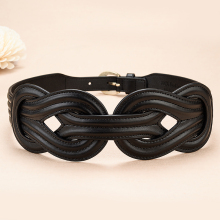 水钻方扣牛皮绸缎腰带女款真皮女士宽腰带装饰连衣裙子宽腰封黑夏