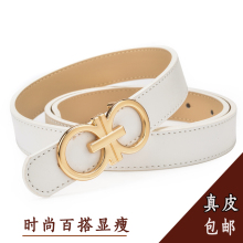 皮带女时尚简约百搭女士细真皮腰带装饰连衣裙腰带腰链白色裤带女