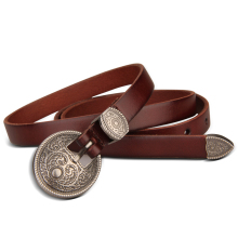 腰带女士细款真皮复古名族风纯牛皮打结辣椒装饰连衣裙裤子新棕色