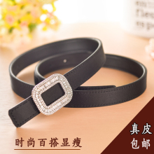 水钻方扣腰带腰封女细真皮装饰牛皮缎面皮带裤带配连衣裙子黑色