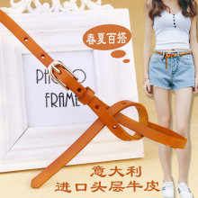 牛皮腰带女细装饰穿线打结真皮女士皮带休闲百搭牛仔裤带腰带裙带