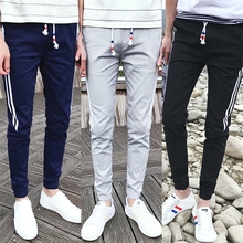 夏天薄款九分裤男生修身三条杠收口运动裤青年哈伦小脚学生裤新款