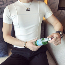 夏季男装T恤 韩版高领短袖紧身时尚百搭五分袖学生百搭修身打底衫