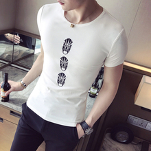 夏装短袖T恤男韩版紧身刺绣脸谱体恤圆领修身半袖打底衫学生上衣