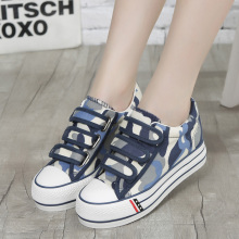 17春夏新韩版潮帆布鞋女士休闲板鞋涂鸦迷彩魔术贴厚底内增高女鞋