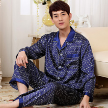 情雪妃睡衣男长袖丝绸家居服男士加大码睡衣春秋休闲男式丝质睡衣