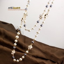 毛衣链女长款韩国时尚气质百搭四叶草珍珠挂件欧美夸张毛衣装饰品