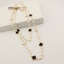 项链女长款韩版时尚清新可爱百搭多层珍珠四叶草毛衣挂链春装饰品