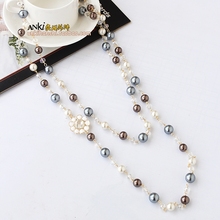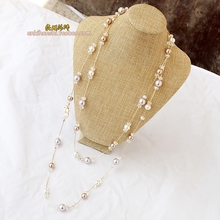 项链女长款韩国时尚百搭多层珍珠挂件韩版冬季新款简约装饰毛衣链