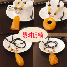 项链女长款韩国时尚百搭仿蜜蜡吊坠挂饰韩版新冬款毛衣挂链装饰品