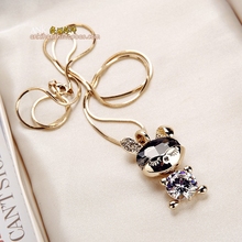 项链女长款韩版时尚可爱小熊吊坠挂件春夏新款流行水晶毛衣装饰链