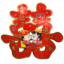 结婚加厚草书金边娃娃大红双喜门喜立体金边娃娃双喜字喜子一对