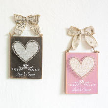 阿楹 原创手工金银线心形装饰木板木牌 个性结婚礼物创意挂件挂饰