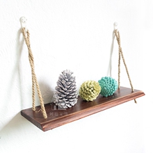阿楹 粗麻绳吊挂一字隔板实木置物架 免打孔搁板支架墙面收纳装饰