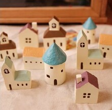 树脂小房子 可爱地中海房子树脂摆件 爱琴海欧式风格工艺品Zakka