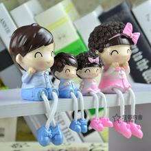 创意家居饰品树脂工艺卡通可爱家居搁板摆件小希一家四口吊脚娃娃