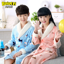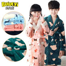2017冬款法莱绒儿童睡袍中大童浴袍男童浴衣女童法兰绒家居服睡衣